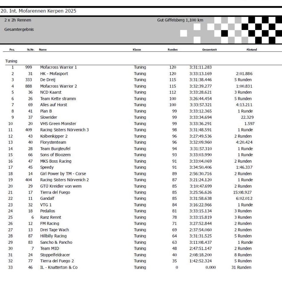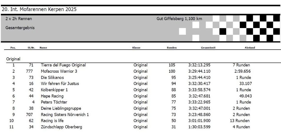 Hier werden die Rennresults ab den Jahren 2025 angezeigt.