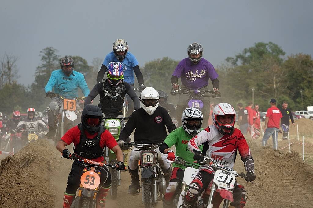 Von 24 gemeldeten Teams standen 23 am Start. Team Nr. 24 – liebevoll „Broken Pleuel“ genannt – musste leider schon im Training wegen eines Kolbenfressers die Segel streichen. Auch die Technik spielte uns einen kleinen Streich: Unsere Transponder steckten im Stau fest, was den Start um eine Stunde verzögerte und das Rennen von fünf auf vier Stunden verkürzte. Doch die Stimmung? Ungebrochen!